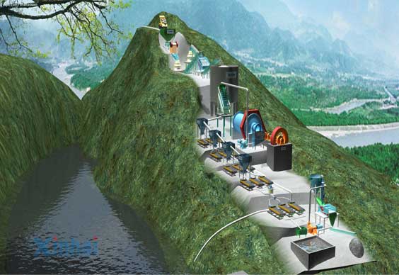 破碎系統(tǒng)采用三段一閉路破碎,磨礦系統(tǒng)采用一段閉路磨礦,高效節(jié)能。選別工藝為:經(jīng)過跳汰和搖床結合的四次重力選別得到精礦和尾礦。尾礦經(jīng)尾礦干排輸送至尾礦庫,精礦經(jīng)濃縮過濾后輸送至精礦倉儲存。